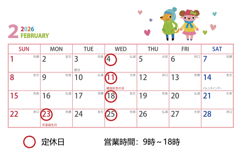 定休日:水曜日、祝日 営業時間:9:00~18:00