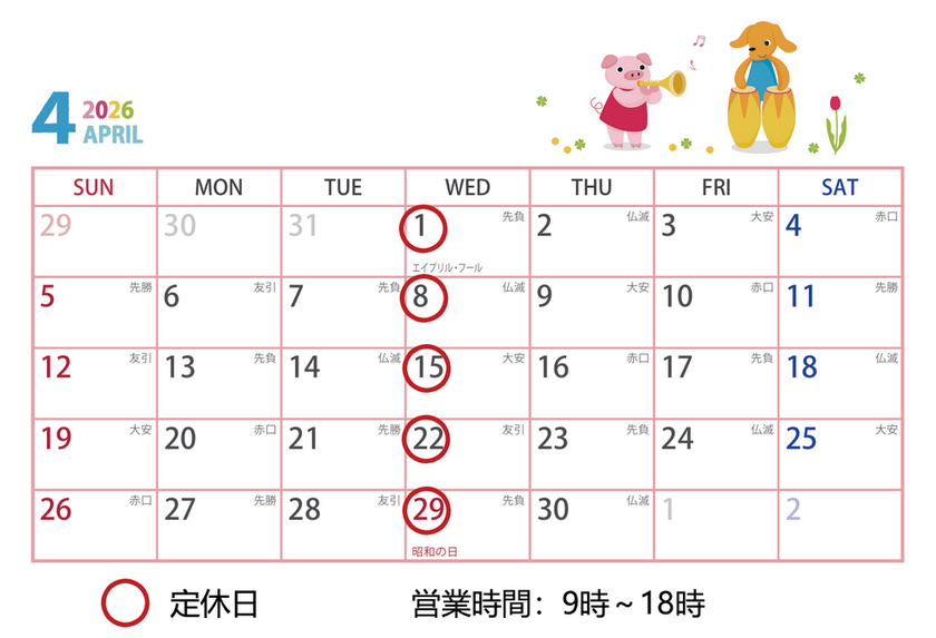 定休日:水曜日、祝日 営業時間:9:00~18:00